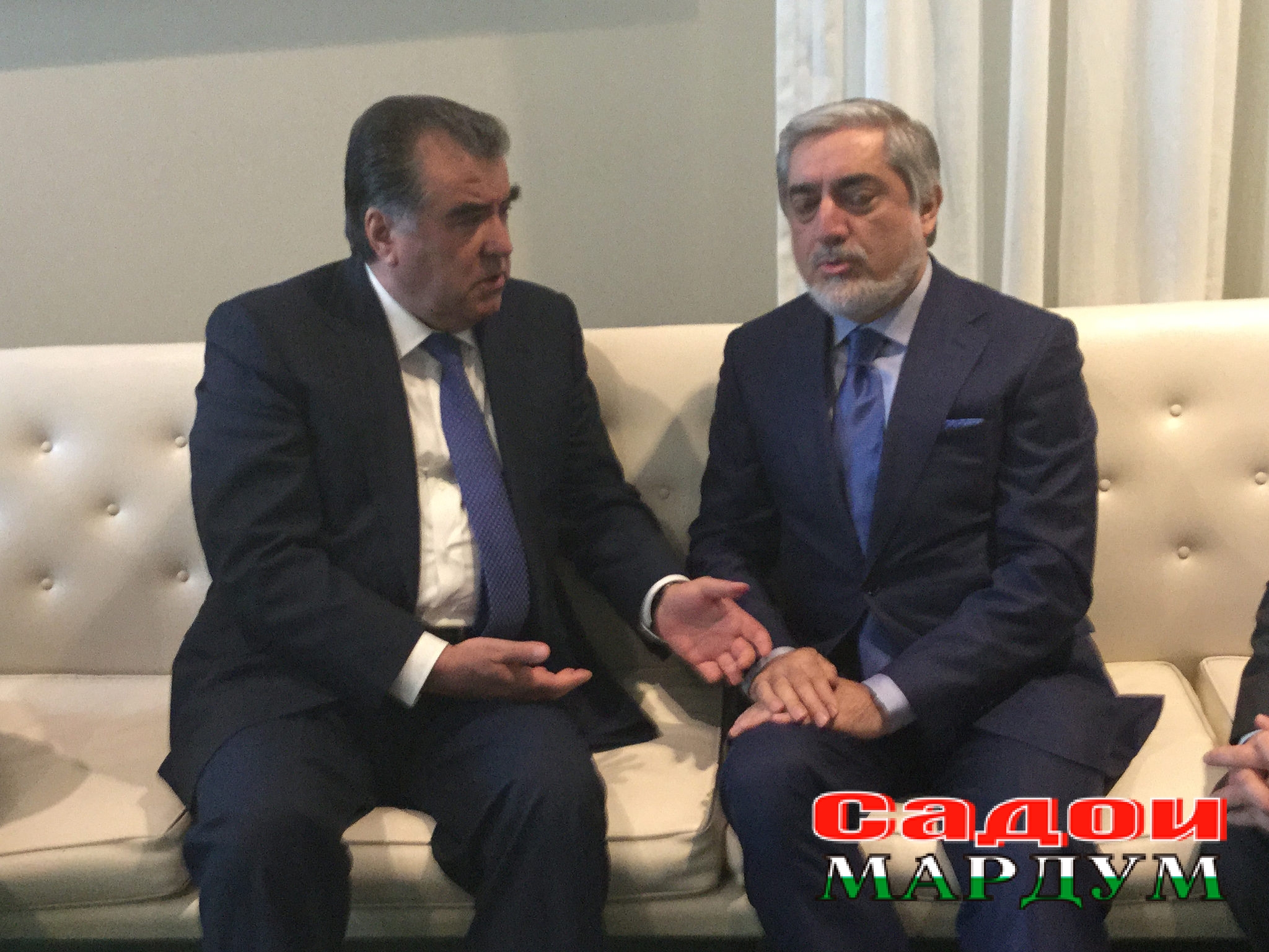28 сентябри соли 2015 дар қароргоҳи СММ дар шаҳри Ню-Йорки ИМА Президенти Ҷумҳурии Тоҷикистон Эмомалӣ Раҳмон бо Раиси иҷроияи Ҷумҳурии Исломии Афғонистон доктор Абдуллоҳ Абдуллоҳ мулоқот намуд.
