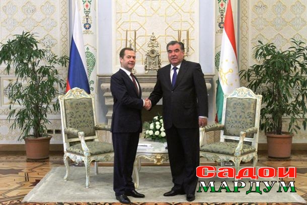 30 октябри соли 2015 Президенти Ҷумҳурии Тоҷикистон Эмомалӣ Раҳмон Раиси Ҳукумати Федератсияи Россия Дмитрий Медведевро, ки барои иштирок дар ҳамоиши навбатии сарони ҳукуматҳои кишварҳои иштирокчии Иттиҳоди Давлатҳои Мустақил (ИДМ) ба шаҳри Душанбе ташриф овардааст, ба ҳузур пазируфт.