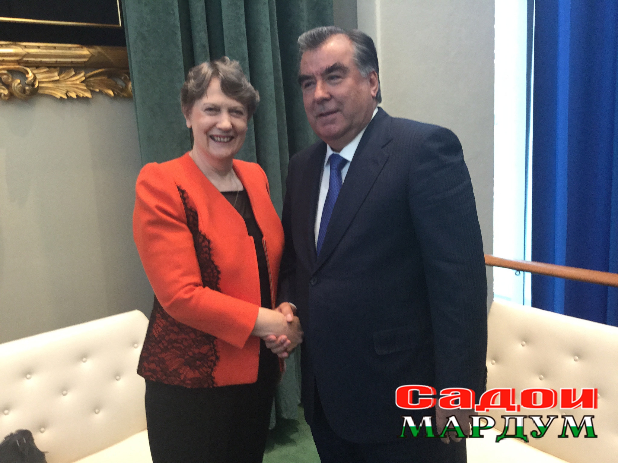 28 сентябри соли 2015 дар қароргоҳи СММ дар шаҳри Ню-Йорки ИМА Президенти Ҷумҳурии Тоҷикистон Эмомалӣ Раҳмон ҳамчунин бо муовини Дабири Кулл, маъмури Барномаи Рушди СММ Ҳелен Кларк мулоқоти судманд анҷом дод.