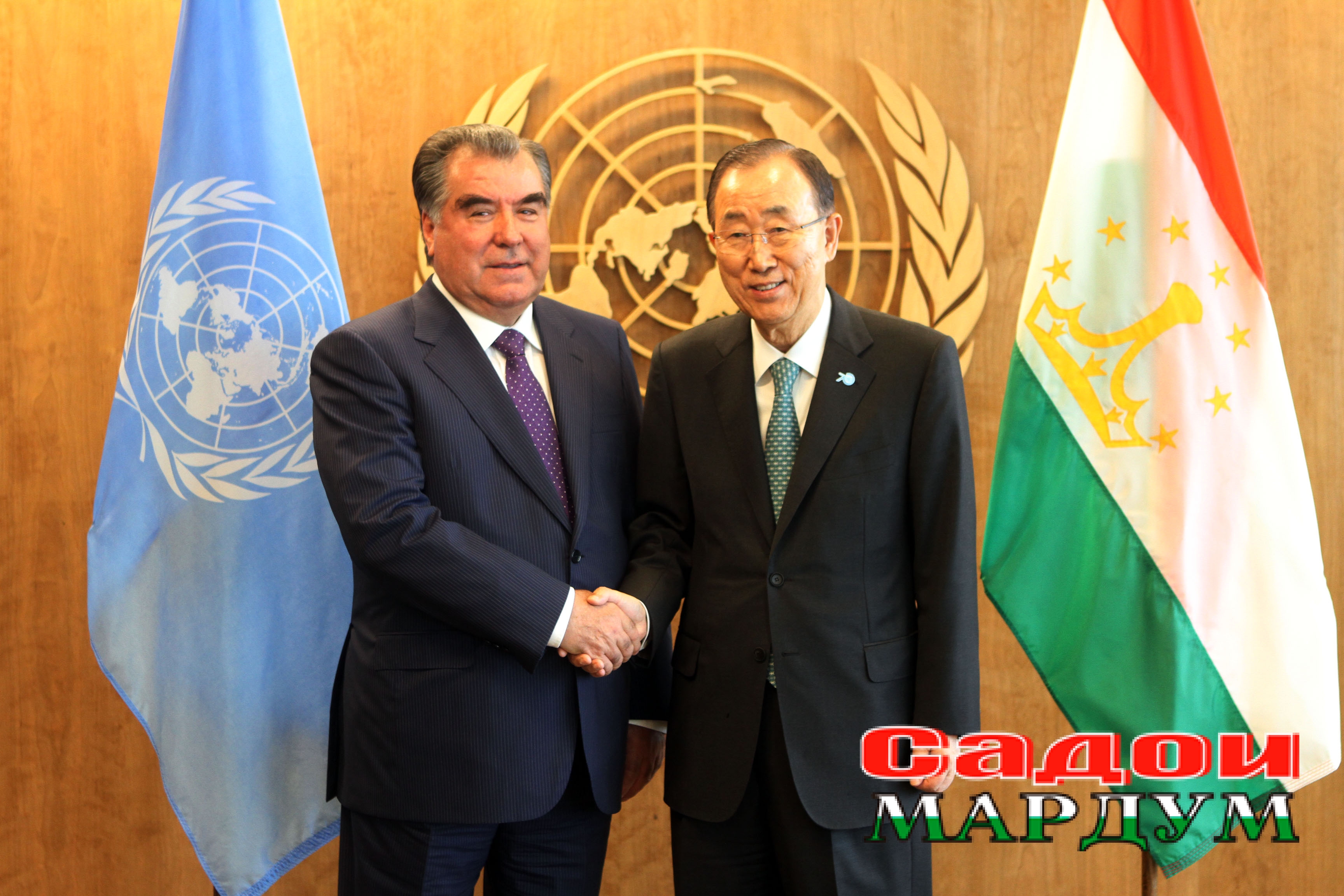Шоми 27 сентябри соли 2015 Президенти Ҷумҳурии Тоҷикистон Эмомалӣ Раҳмон дар шаҳри Ню — Йорки ИМА дар ҳошияи Саммити ҷашнии 70-солагии Созмони Милали Муттаҳид ҳамчунин бо Дабири кулли Созмони Милали Муттаҳид Пан Ги Мун мулоқот орост.